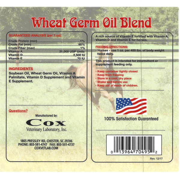 - 100% Pure Wheat Germ Oil specially blended with Soybean Oil for promoting healthy skin and a shiny coat